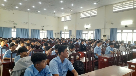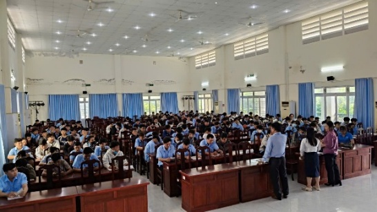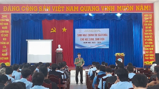 Trong chương trình, Nhà trường phổ biến các quy định về học tập, rèn luyện của học sinh sinh viên; đồng thời phối hợp với Bảo hiểm xã hội tỉnh Cà Mau tuyên truyền về quyền lợi, trách nhiệm khi tham gia bảo hiểm xã hội tự nguyện và bảo hiểm y tế học sinh sinh viên. Bên cạnh đó, Công an tỉnh chia sẻ chuyên đề về phòng chống tội phạm mạng, thủ đoạn lừa đảo “bắt cóc online, kỹ năng sử dụng internet an toàn; đồng thời tuyên truyền, giáo dục ý thức chấp hành pháp luật, đặc biệt về an toàn giao thông cho học sinh sinh viên.