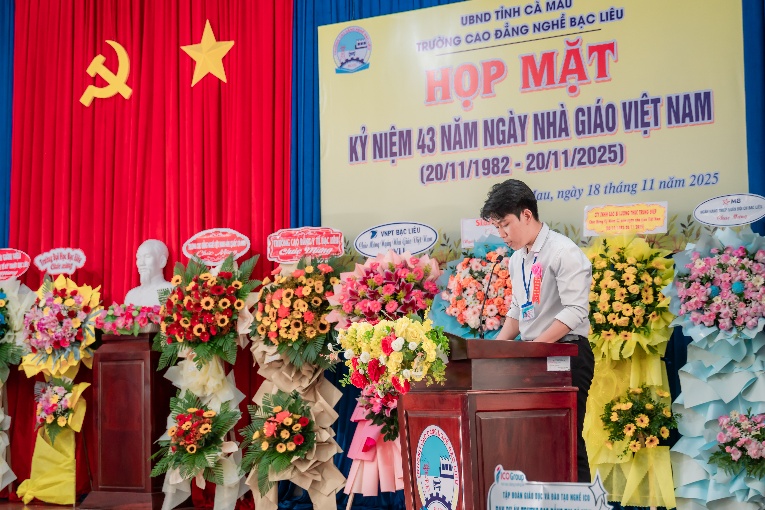 Buổi họp mặt kỷ niệm 43 năm Ngày Nhà giáo Việt Nam tại Trường Cao đẳng nghề Bạc Liêu khép lại trong không khí ấm áp, tràn đầy niềm vui, tự hào và cảm xúc. Những bó hoa tươi thắm, những lời chúc tốt đẹp cùng những nụ cười chân thành là minh chứng cho tình cảm, sự tri ân sâu sắc của học sinh sinh viên dành cho thầy cô. Mỗi thầy cô như được tiếp thêm ngọn lửa nhiệt huyết, mỗi học sinh sinh viên thêm vững tin vào con đường mình đã chọn.