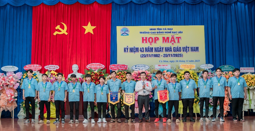 Trong không khí cả nước hân hoan hướng về Ngày Nhà giáo Việt Nam 20/11 - ngày tôn vinh nghề cao quý nhất trong những nghề cao quý. Chiều ngày 18/11/2025, Trường Cao đẳng nghề Bạc Liêu tổ chức họp mặt kỷ niệm 43 năm Ngày Nhà giáo Việt Nam (20/11/1982 - 20/11/2025). Buổi họp mặt là dịp để tri ân những cống hiến thầm lặng nhưng to lớn của các thế hệ nhà giáo, viên chức đã và đang góp phần xây dựng, phát triển Nhà trường ngày càng vững mạnh.