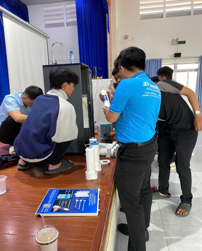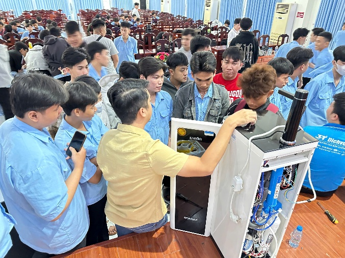 Trong chương trình, đội ngũ kỹ sư của Công ty trực tiếp giảng dạy, hướng dẫn và hỗ trợ học sinh sinh viên. Với trình độ chuyên môn cao và kinh nghiệm thực tiễn phong phú cùng tác phong làm việc chuyên nghiệp, các kỹ sư đã truyền tải nhiều nội dung thiết thực, phù hợp với nhu cầu tuyển dụng và xu hướng phát triển của nghề trong giai đoạn hiện nay. Người học được tiếp cận các kiến thức về công nghệ xử lý nước, cấu tạo và nguyên lý hoạt động của các dòng máy lọc nước cùng quy trình lắp đặt và bảo trì thiết bị; đồng thời được rèn luyện kỹ năng vận hành, phân tích và xử lý những tình huống kỹ thuật thường gặp trong thực tế. Thông qua việc trao đổi trực tiếp với các kỹ sư về kinh nghiệm nghề nghiệp, yêu cầu đối với nguồn nhân lực và định hướng công việc trong bối cảnh chuyển đổi số, học sinh, sinh viên có cơ hội củng cố chuyên môn và hiểu rõ hơn các yêu cầu thiết yếu của nghề.