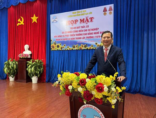 Phát biểu tại buổi họp mặt, thay mặt Đảng ủy, Ban Giám hiệu Nhà trường, Tiến sĩ Nguyễn Thanh Sang, Bí thư Đảng ủy, Hiệu trưởng bày tỏ lòng tri ân sâu sắc đối với những đóng góp to lớn của các thế hệ thầy cô - những người đã dành trọn tâm huyết và trí tuệ xây dựng nền móng vững chắc cho sự phát triển của Trường Cao đẳng nghề Bạc Liêu hôm nay. Cũng tại buổi họp mặt, tập thể Nhà trường vinh dự được lắng nghe những chia sẻ xúc động của thầy Phan Duy Tuyên, nguyên Hiệu trưởng Trường Trung cấp Kỹ thuật Công nghệ Bạc Liêu (nay là Trường Cao đẳng nghề Bạc Liêu) về hành trình xây dựng và phát triển Nhà trường. Nhân dịp này, Tiến sĩ Nguyễn Thanh Sang, Bí thư Đảng ủy, Hiệu trưởng đã trân trọng trao tặng biểu trưng tri ân đến quý thầy cô như một lời cảm ơn chân thành và sự ghi nhận đối với những cống hiến bền bỉ của các thế hệ nhà giáo.